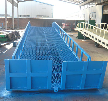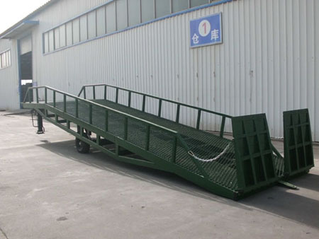 移動式登車橋是與叉車配合使用的貨物裝卸專用輔助設備,有了它叉車能直接從地面駛?cè)肫囓噹麅?nèi)部進行批量裝卸作業(yè)。產(chǎn)品采用人工液壓動力,不需接動力電源。只需單人操作,即可實現(xiàn)貨物的安全快速裝卸。它可使企業(yè)減少大量勞動力,成倍提高裝卸作業(yè)效率,加快貨物流通速度,獲取更大經(jīng)濟效益。